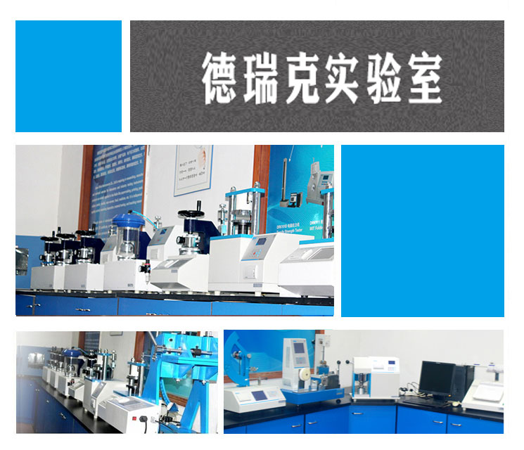 德瑞克除了擁有完善的科研、生產團隊和標準車間外,還擁有一個國際化的標準實驗室。實驗室總面積約200m2,配備了紙品包裝檢測儀器60余臺,總價值超過1000萬元,涵蓋抗壓、強度、拉力、耐破、耐折、厚度、撕裂、柔軟度、戳穿、平滑度、剝離、水分、壓縮、熱封、密封等多類檢測項目。