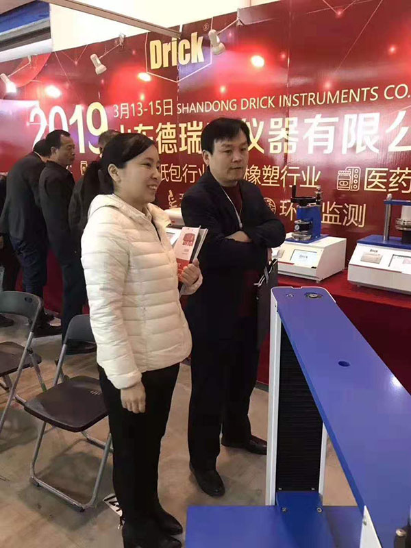 上午九點,一曲歡快的《好運來》為展會開幕式增添了濃墨重彩的一筆。本次展會,我們展出的產品有:電子拉力試驗機、壓縮儀、耐破度儀、測厚儀、熱封儀、耐折度儀、戳穿度儀以及各種取樣器。展會開始不久,憑借產品的外觀、性能以及參展人員專業的產品知識、銷售技能,我們的展臺前來了一波又一波的觀展人員。為企業帶來了更深層次的潛在客戶。