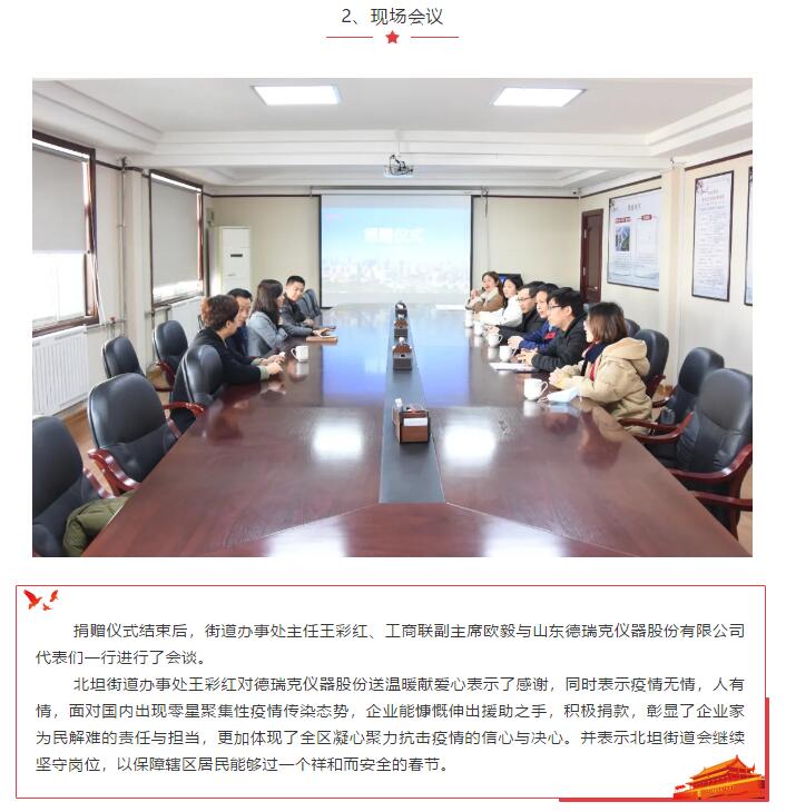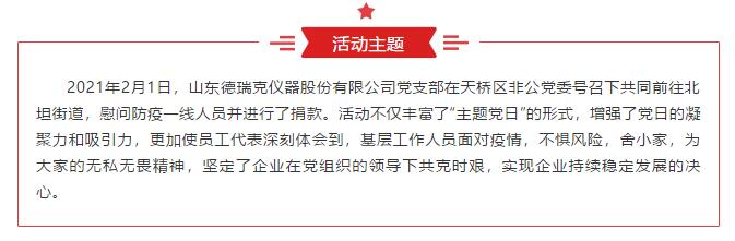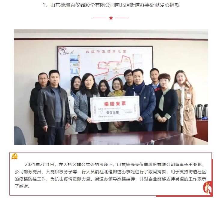 凝聚黨心 共同抗疫:山東德瑞克儀器股份有限公司黨支部響應天橋區非公黨委號召向街道奉獻愛心